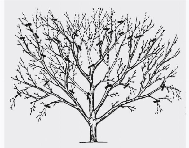 Если рост побегов резко остановился, то в этом случае проводят омолаживающую обрезку. Эту обрезку, как правило, начинают при длине однолетних побегов до тридцати сантиметров. Данную работу делают переводом на боковые ветви в той зоне, где неоднократно замечали активный рост.